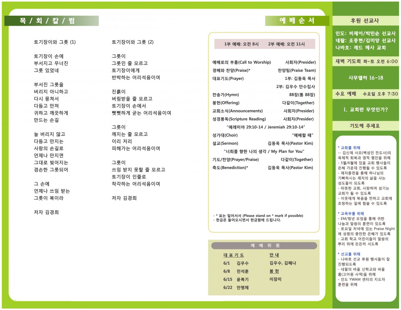 [순장 지원자 모집 및 순 모임 조정] 순 모임의 조직과 운영을 좀 더 나은 방향으로 발전시키기 위해 6월부터 8월까지 준비 기간을 거친 후 9월에 다시 모임을 시작합니다. 순장으로 지원하기 원하시는 분은 담임목사님께 알려 주십시오.