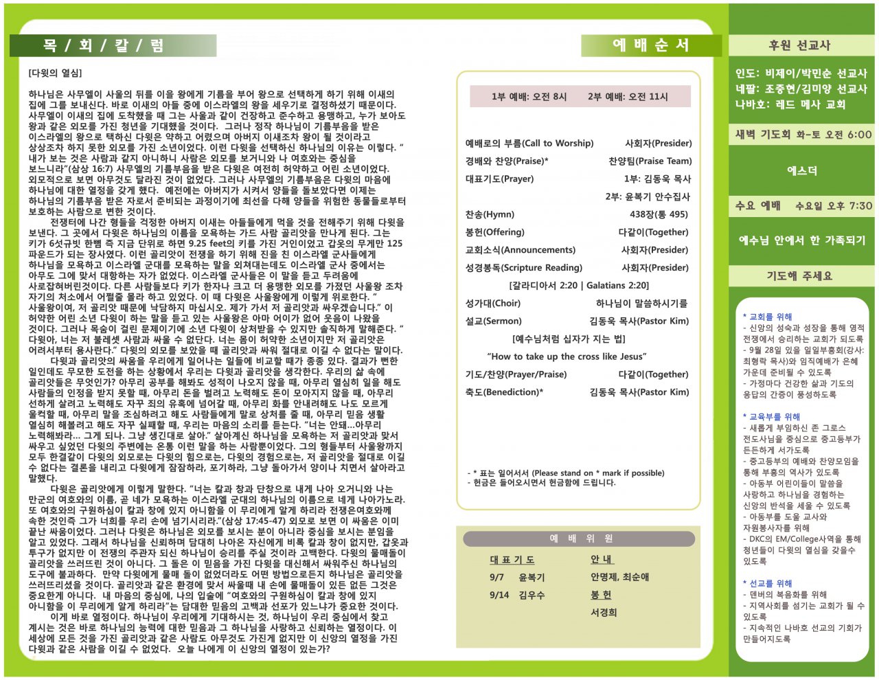 [교회소식] 2014년 9월 7일