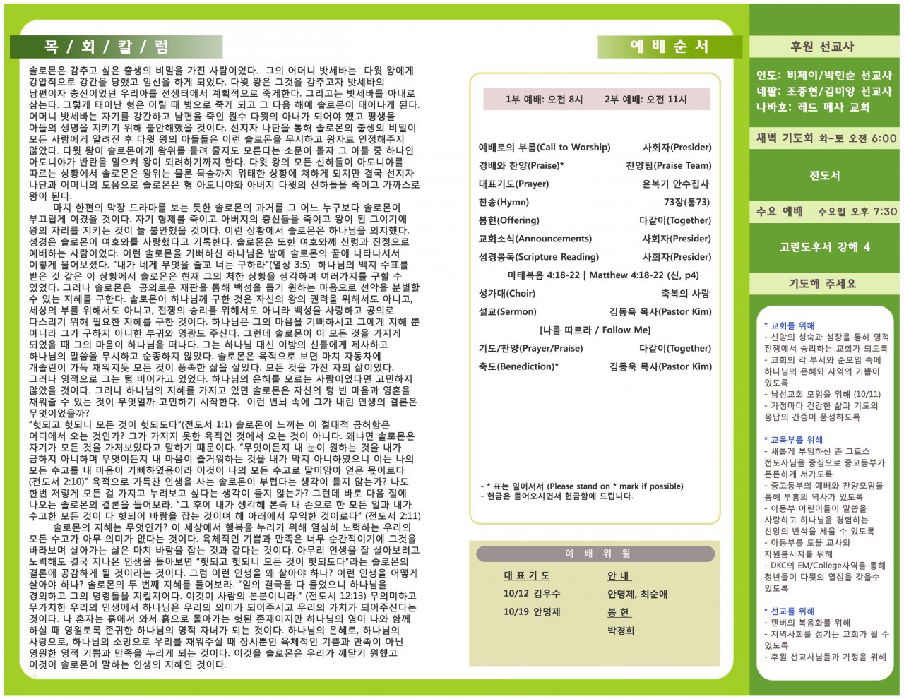 [순 모임] 순 모임을 10월 부터 시작합니다. 자세한 일정과 장소는 순장님께 문의해 주십시오. 1순 (순장: 안명제 안수집사) / 2순 (순장: 권릴리 집사) / 3순 (순장: 윤복기 안수집사) / EM-청년
