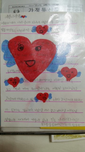 마지막 사진은 쌍둥이 언니인 하람이가 동생 예람이이게 쓴 편지입니다.