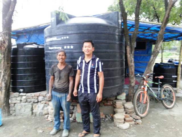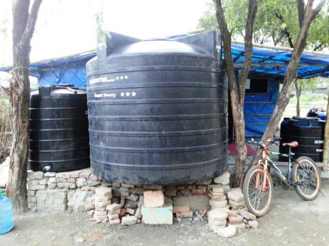 5000L짜리 .1000L짜리. 500L짜리 물통을 사서 물차를 부른뒤 정수를 합니다.