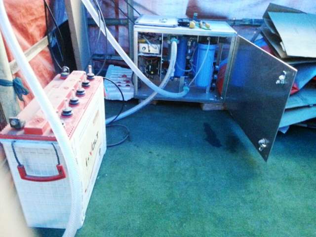 전기공급이안됨으로 솔라시스템을 설치하고 밧데리 2개를 설치해서 정수를합니다.