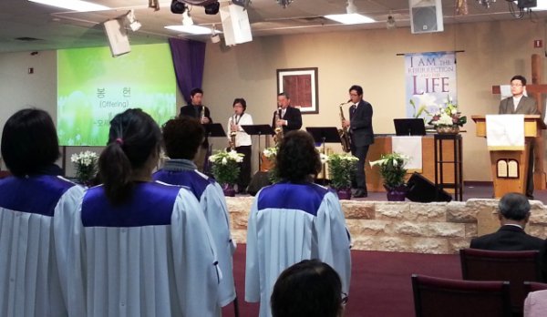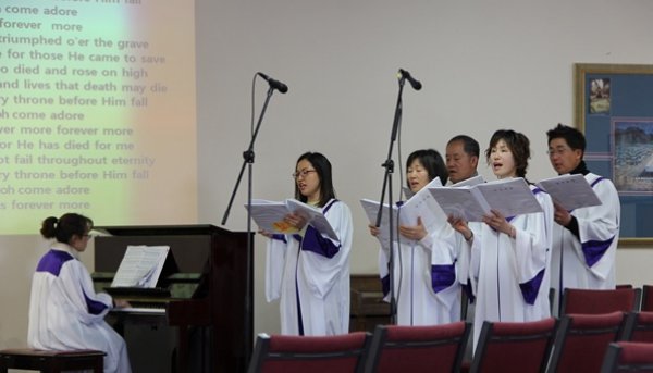 부활절예배의 찬양팀과 성가대